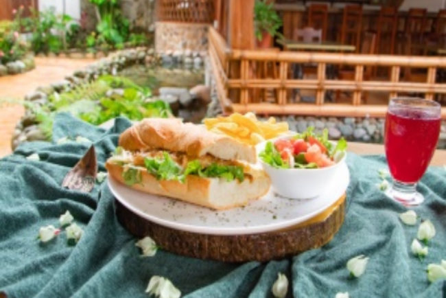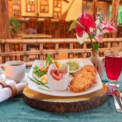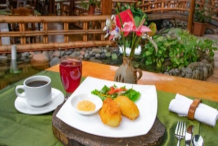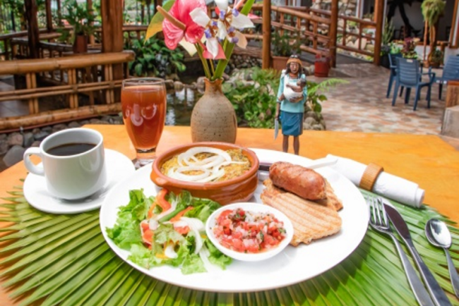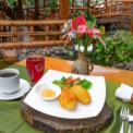 DesayunosTortilla de huevos con vegetales en salsa de la casa, sanduche de queso, chorizo, ensalada fresca, salsa criolla, mermelada artesanal, café y jugo del día.